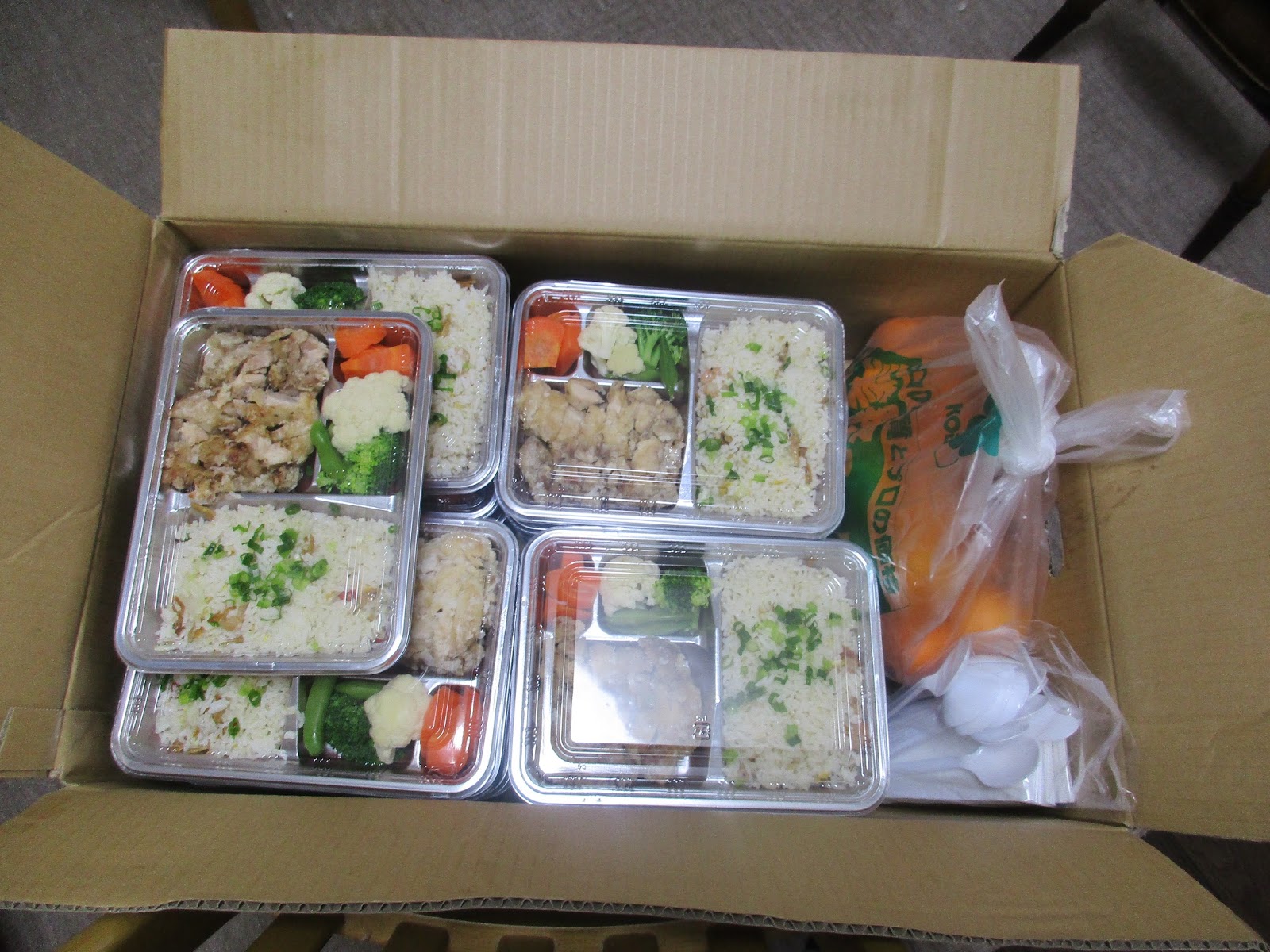 | Menu: Nasi putih, ayam masak sambal dan sayur campur dengan buah oren sebiji. |
